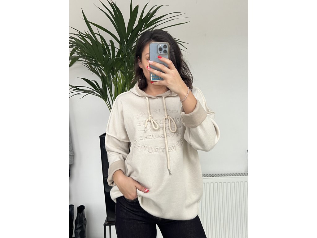 Béžová voľná mikina v jemnom odtieni, ideálna na každý deň.
