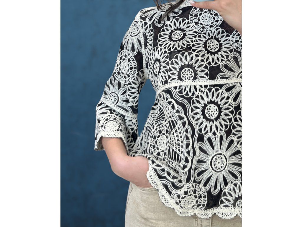 Elegantný top v čierno-bielom vzore. Kvalitná zmes bavlny a polyesteru. Štýlový a pohodlný.