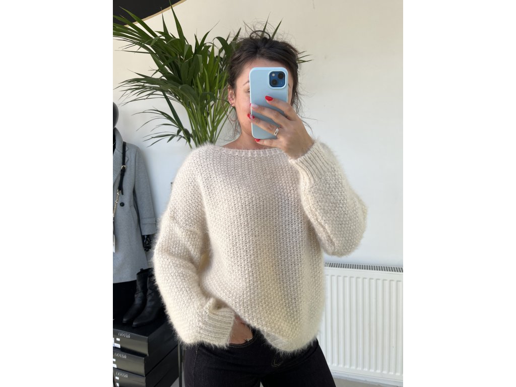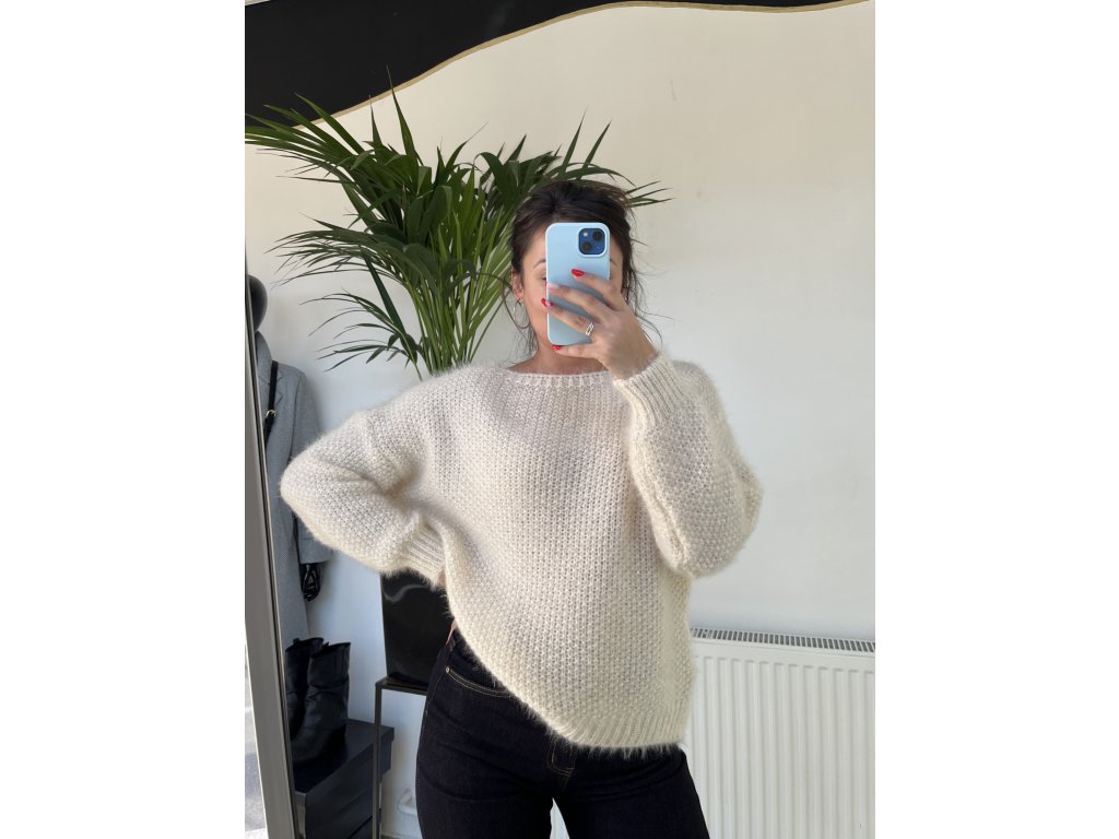 Svetlý mäkký svetrík v nadčasovej farbe, ktorý pôsobí čisto a elegantne.